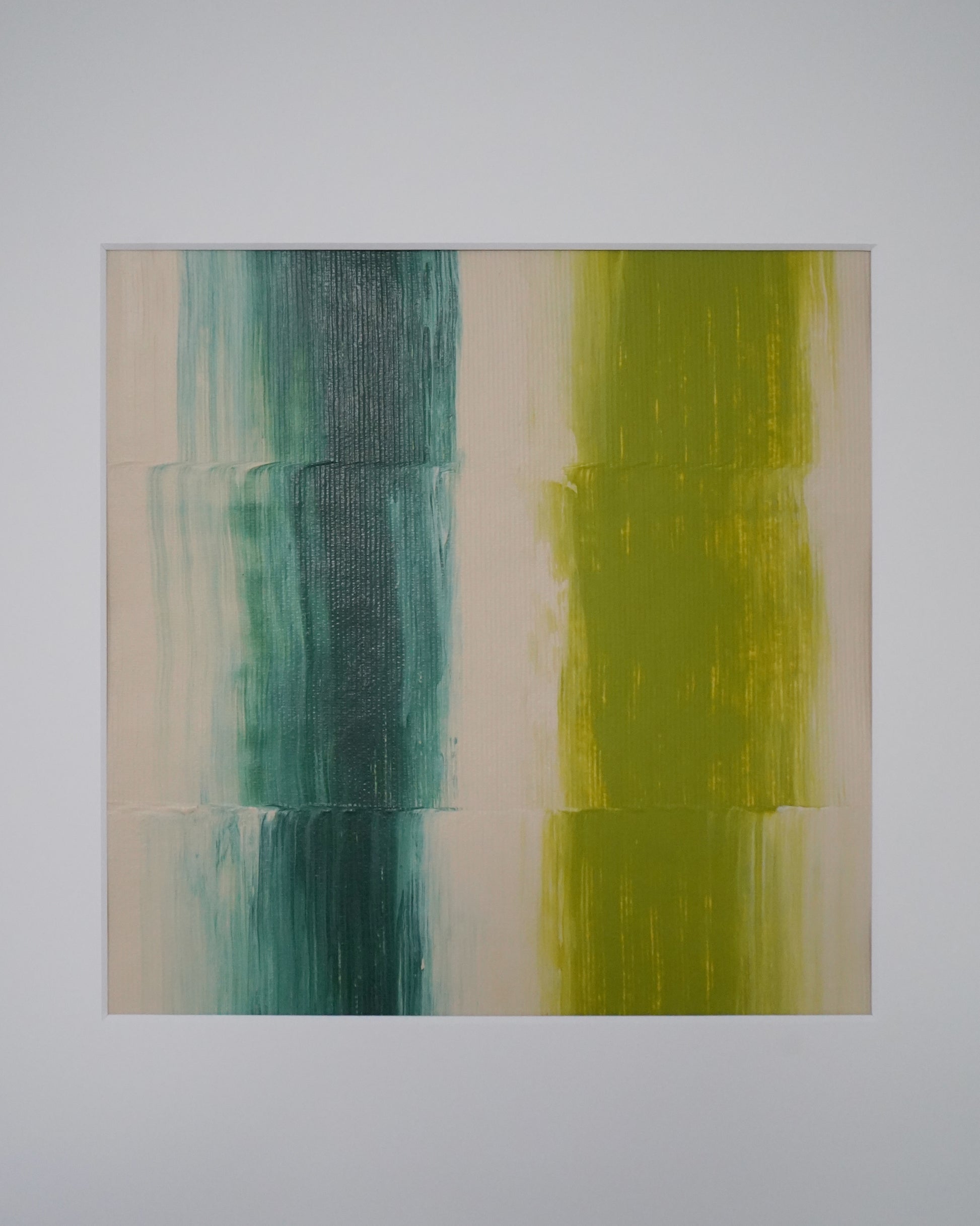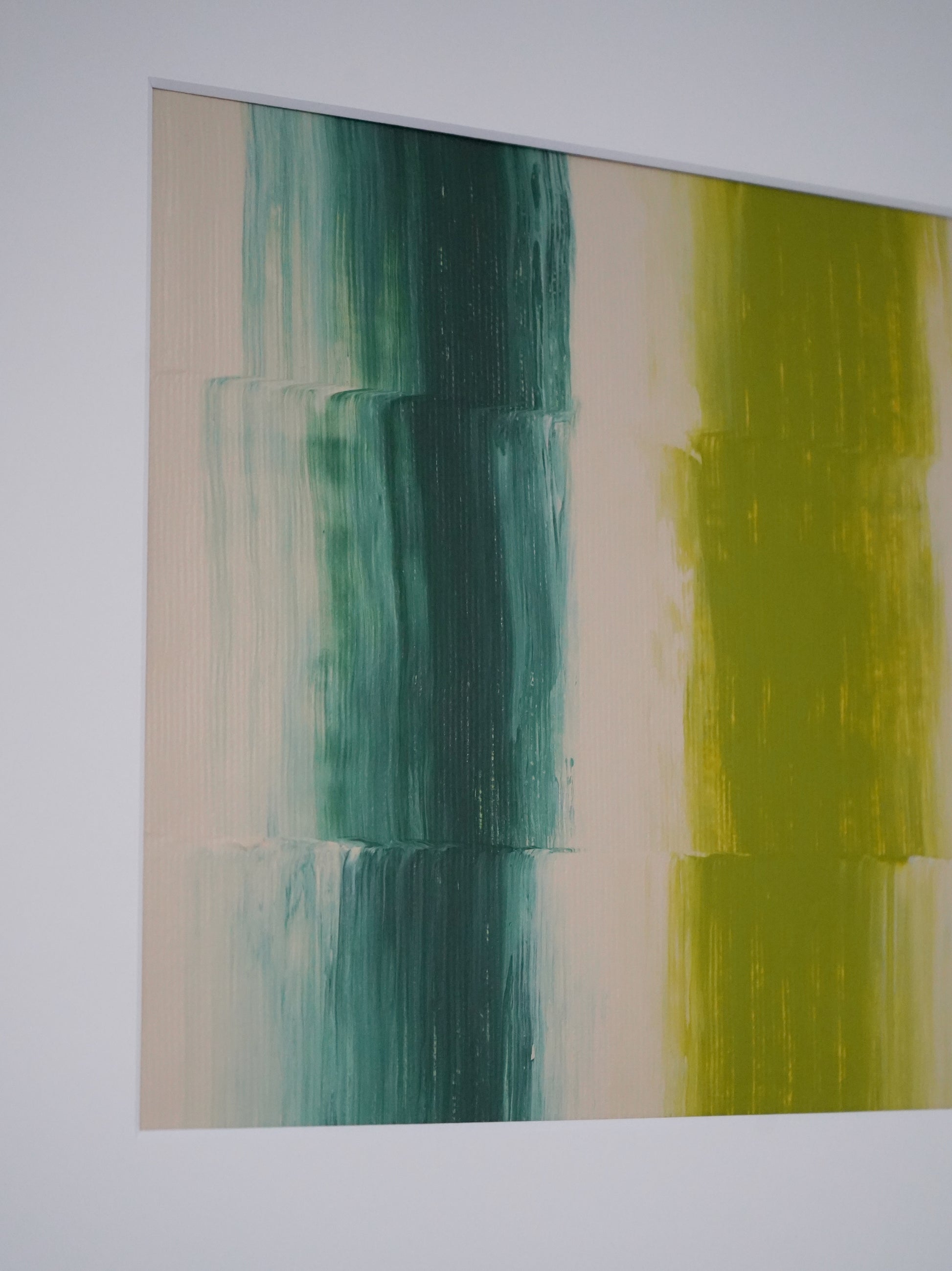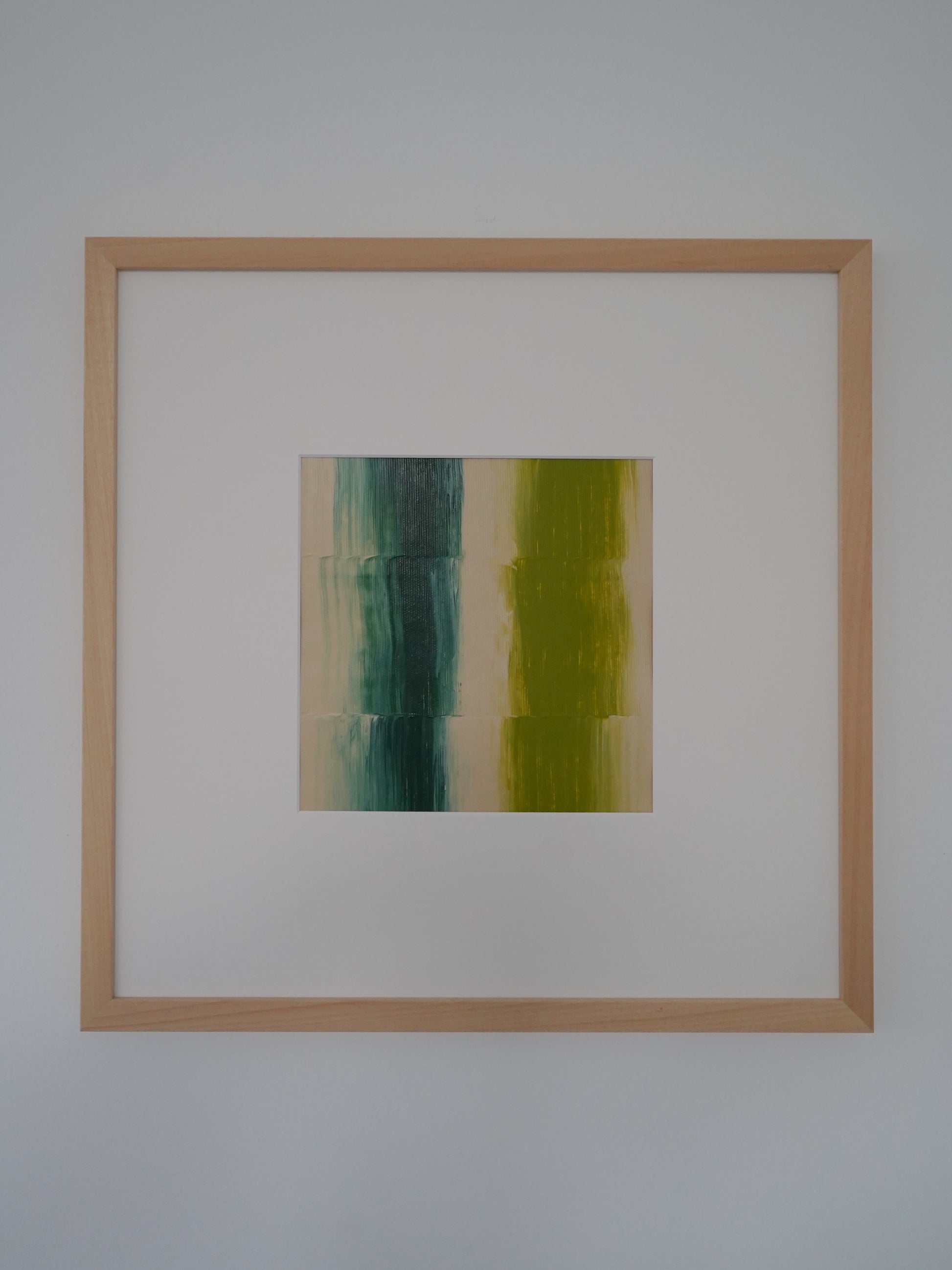 Kleines abstraktes Bild "AURA" (20x20cm), Acryl auf Leinwand in Burgund & Rosa mit Passepartout.
